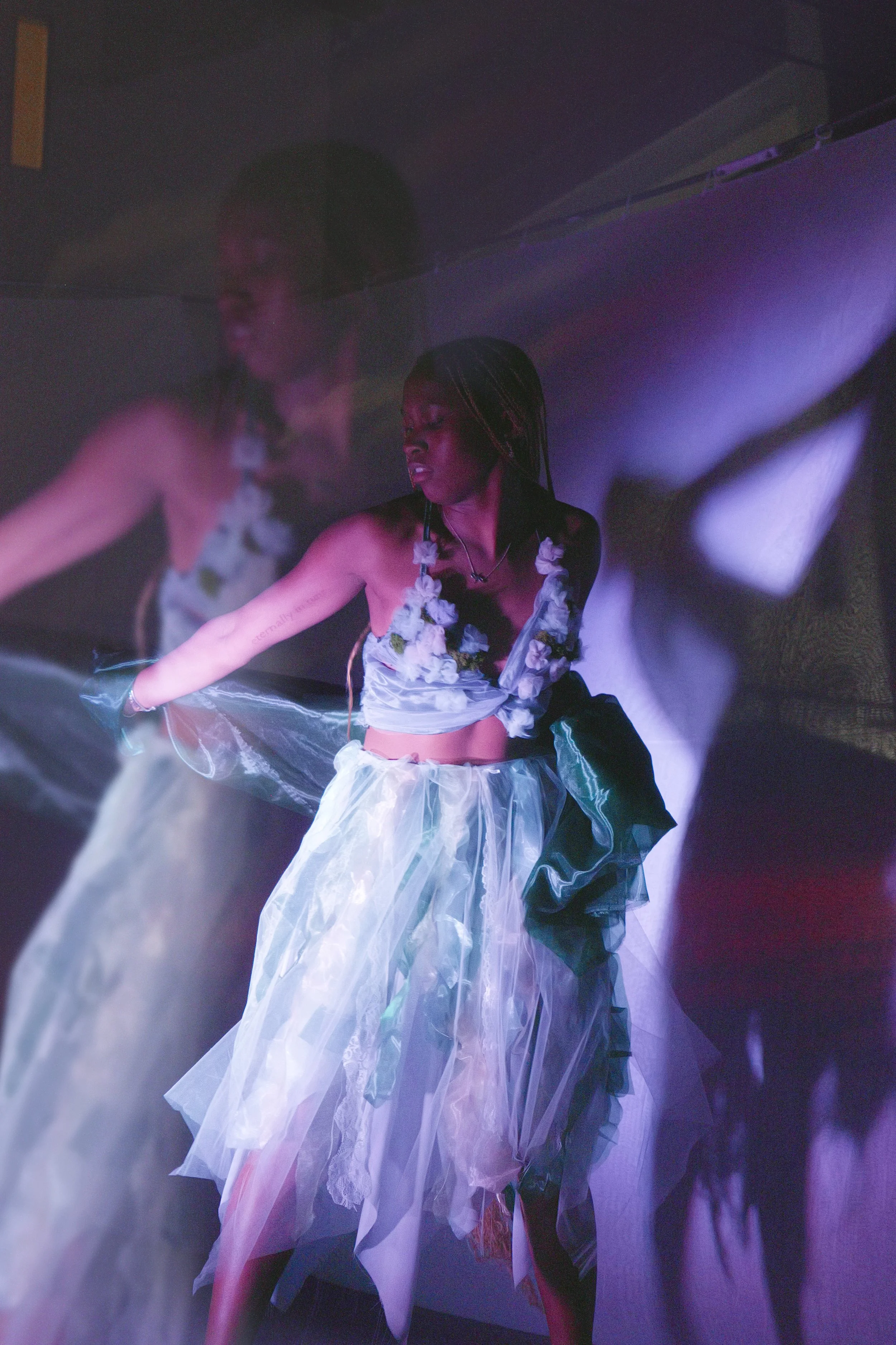 Blue Succession is an intersection between digital art and fashion. Four fashion designers were paired with four media artists. Projection mapping interacted with the designs and environment around them. The team built their own 30 ft wide cube to have full control over the set.